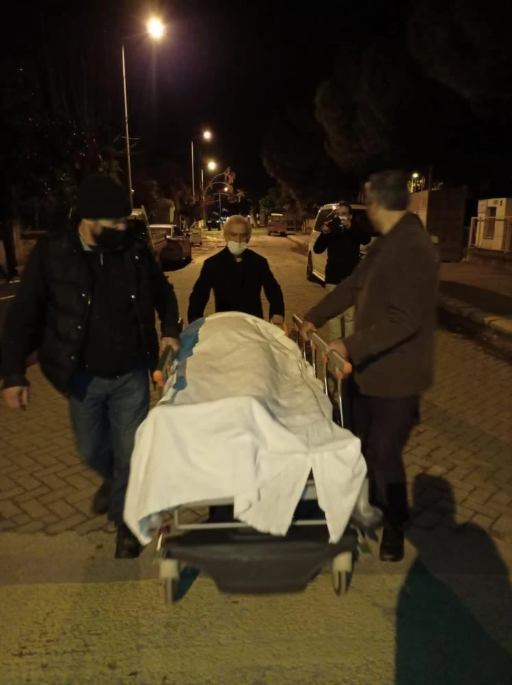 Yaşlı kadın sedye üzerinde evine götürüldü