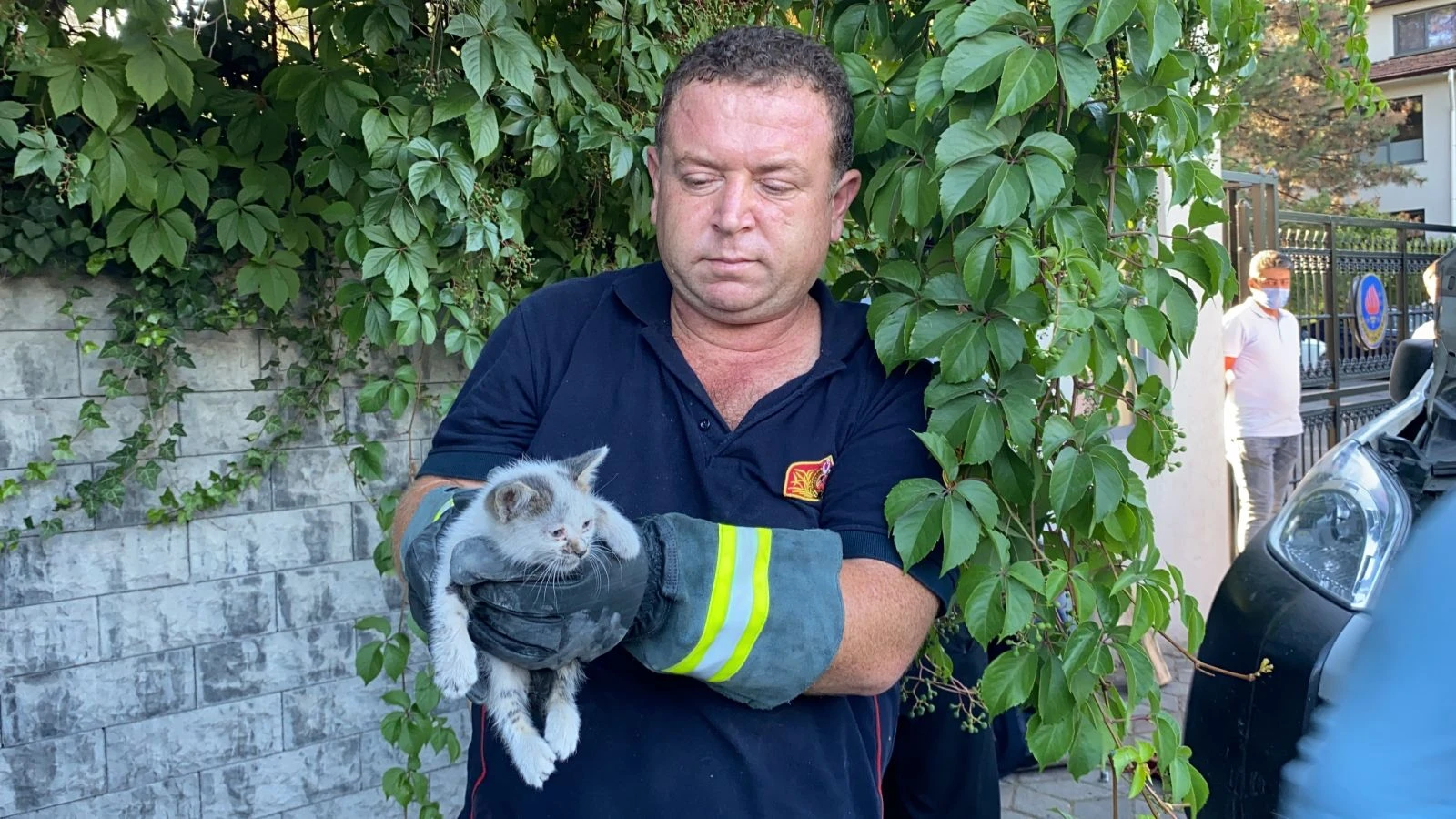 Gelen ekipler cep telefonundan kedi sesi dinlettiği kedinin yerini tespit ederek çalışma başlattı. Yaklaşık 1 saatlik çalışmanın ardından kedi yavrusu sıkıştığı yerden kurtarıldı. Boş bir alana bırakılan yavrunun yanına anne kedinin geldiği görüldü.