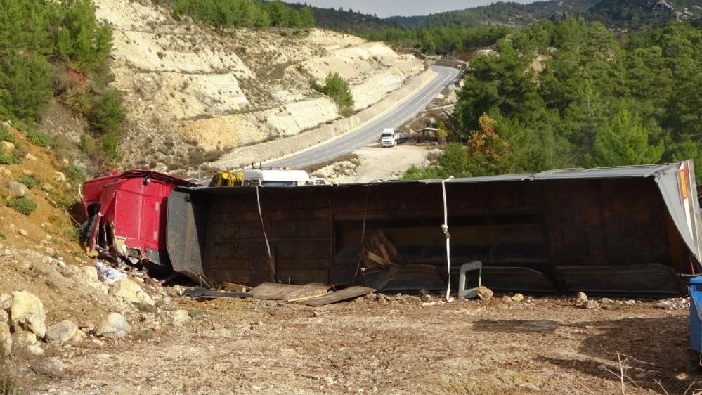 Antalya'nın Manavgat ilçesinde bariyerleri parçalayarak devrilen tır şoförü ağır yaralandı. Ağır yaralı şoför ambulansla hastaneye kaldırıldığı sırada yolda hayatını kaybetti. Ölen şoför ilk seferini gerçekleştirdiği öğrenildi.