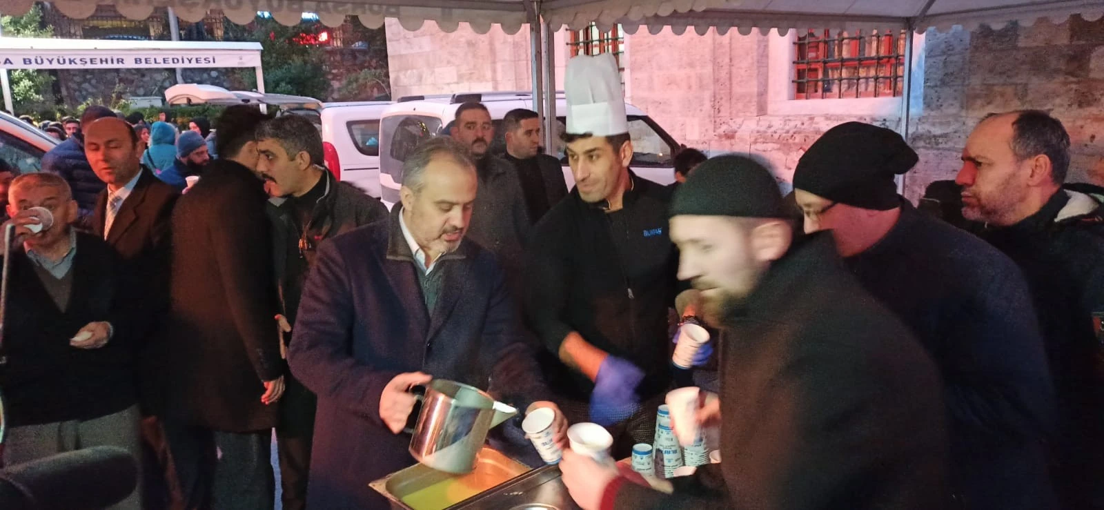 Sabah namazına katılan Bursa Büyükşehir Belediye Başkanı Alinur Aktaş, vatandaşlara kendi elleriyle çorba ikram etti.