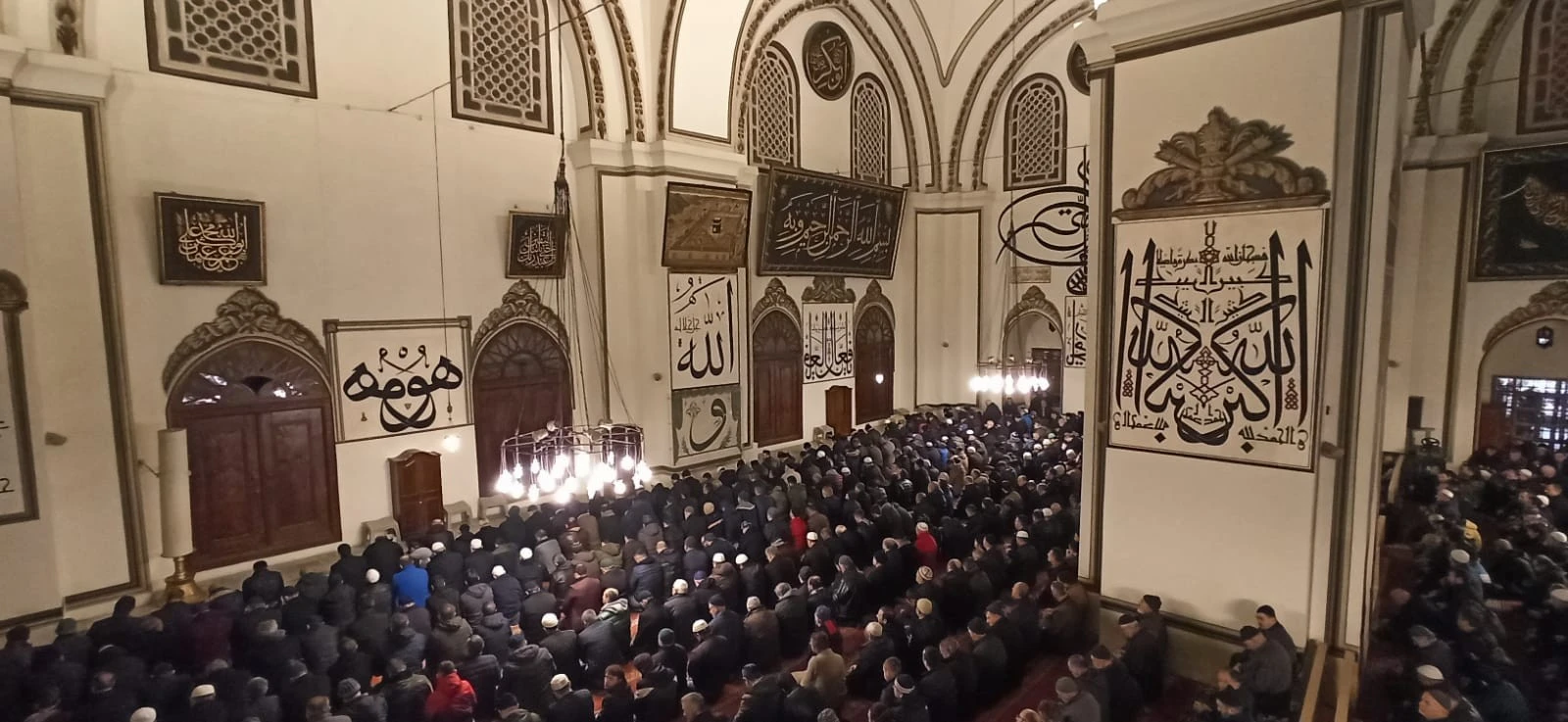 Camiye araçlarıyla gelen vatandaşlar ise Atatürk Caddesi'ne park edince burada trafik bir süre en sağ şeritten verildi.