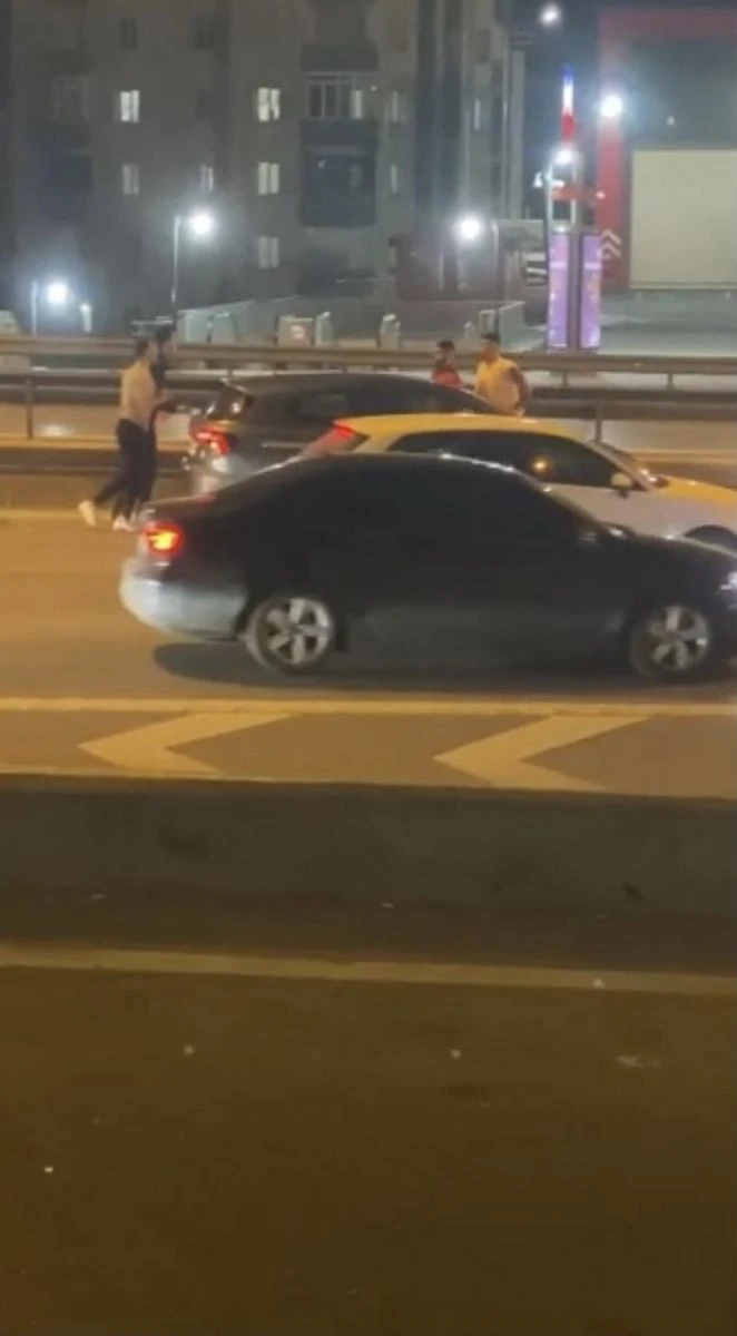 Kavga sonucu D-100 karayolu ringe dönüşürken, sürücüler yolda buldukları taşları birbirine savurdu. Trafikte hem kendi canlarını hem de diğer sürücülerin canını tehlikeye atan yol verme kavgası, çevredekilerin araya girmesiyle son buldu. O anlar, cep telefonu kamerasına yansıdı.