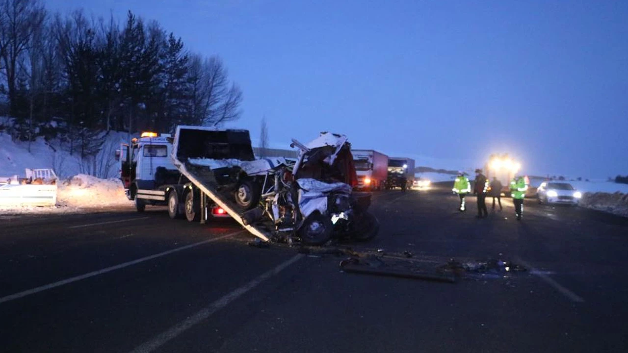 Sivas’ta yolcu otobüsü ile kamyonet çarpıştı. Kazada kamyonetteki 2 kişi hayatını kaybederken otobüsteki 19 yolcu yaralandı.