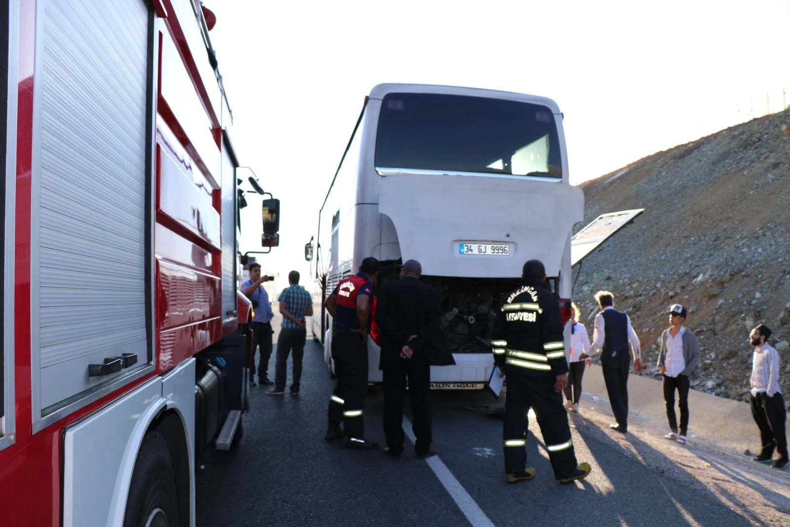 Olay yerinde jandarma ve polis ekipleri incelemede bulunarak trafik akışını sağlarlarken hareket kabiliyetinden yoksun olan otobüsün yolcuları yolun kenarında beklemeye başladı. Yolcuların başka bir otobüse nakledilecekleri kaydedildi.