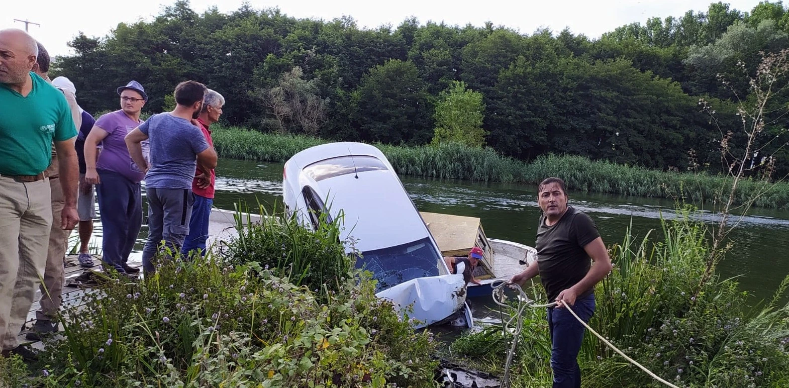 Kontrolden çıkan otomobil karada bulunan bir tekneye çarparak Melen Çayı’na uçtu. Araç, o esnada kayığını köprünün altında bulunan iskeleye bağlamaya çalışan Şinasi Gökmen’in, kayığının üzerine düştü.